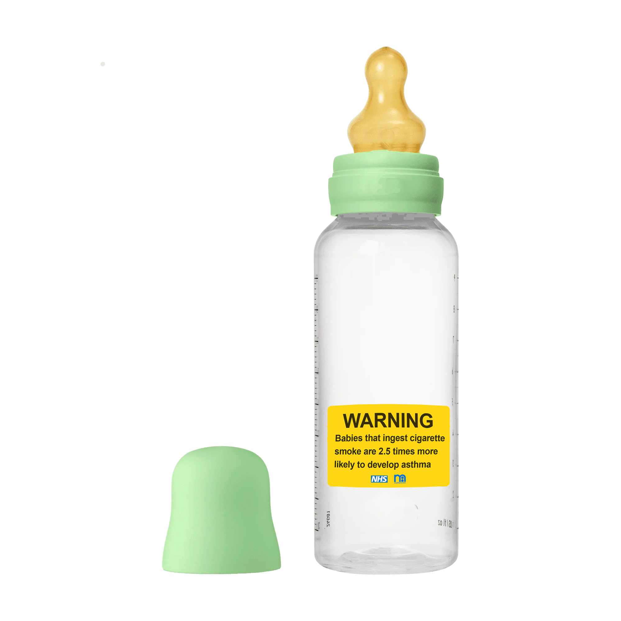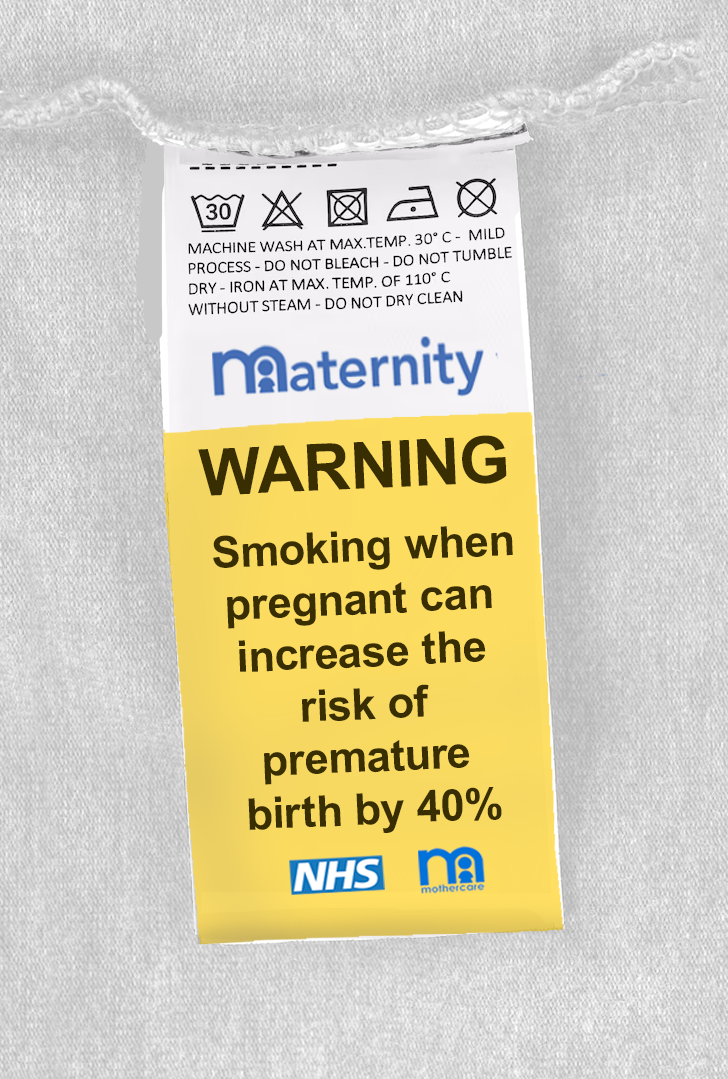 An ambient anti-smoking campaign from Mothercare and the NHS, that aimed to hit like a punch in the lungs. We’ve become immune to health warnings on cigarette packets. By putting stickers with stark warnings on cots, baby bottles and on the washing labels in maternity clothes; the placement of the message hopefully stopped smoking parents in their tracks and made them stub out cigarettes for good.